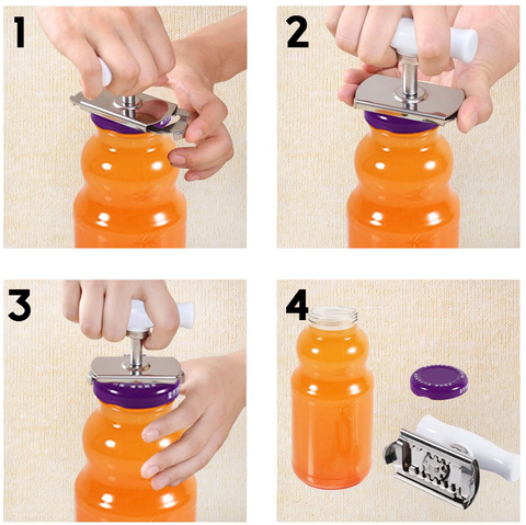 - סובב את ידית פותחן הבקבוקים והברג את מכסה הצנצנת.